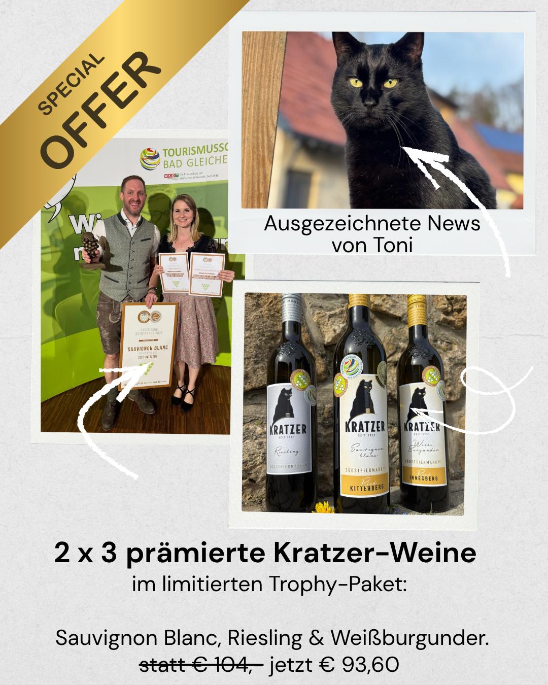 Ein armer Weinbauer hatte den Teufel um Hilfe gebeten: "Ich schenk´ dir meine Seele, wenn du mir hilfst in meinem Fass den besten Wein der ganzen Gegend zu haben!" Der Teufel war einverstanden und bald waren die Fässer gefüllt. Auf das größte mit dem besten Wein setzte der Höllenfürst die schwarze Katz und sagte: "Die wird Glück bringen und immer auf dem Fass mit dem besten Wein sitzen!"